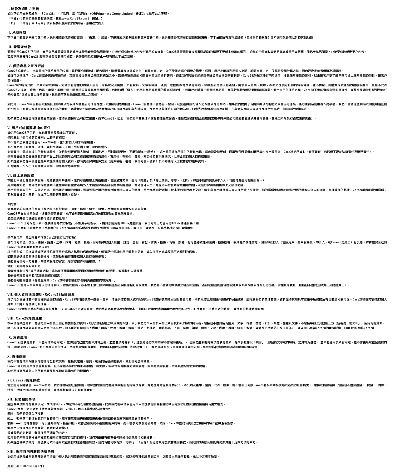 Care28網站及平台使用條款及細則